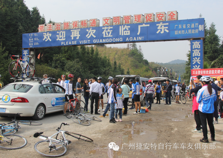 快要出省了,赣州地区的捷安特车友拉起横幅迎接广东的车友,粤赣一家亲。O(∩_∩)O