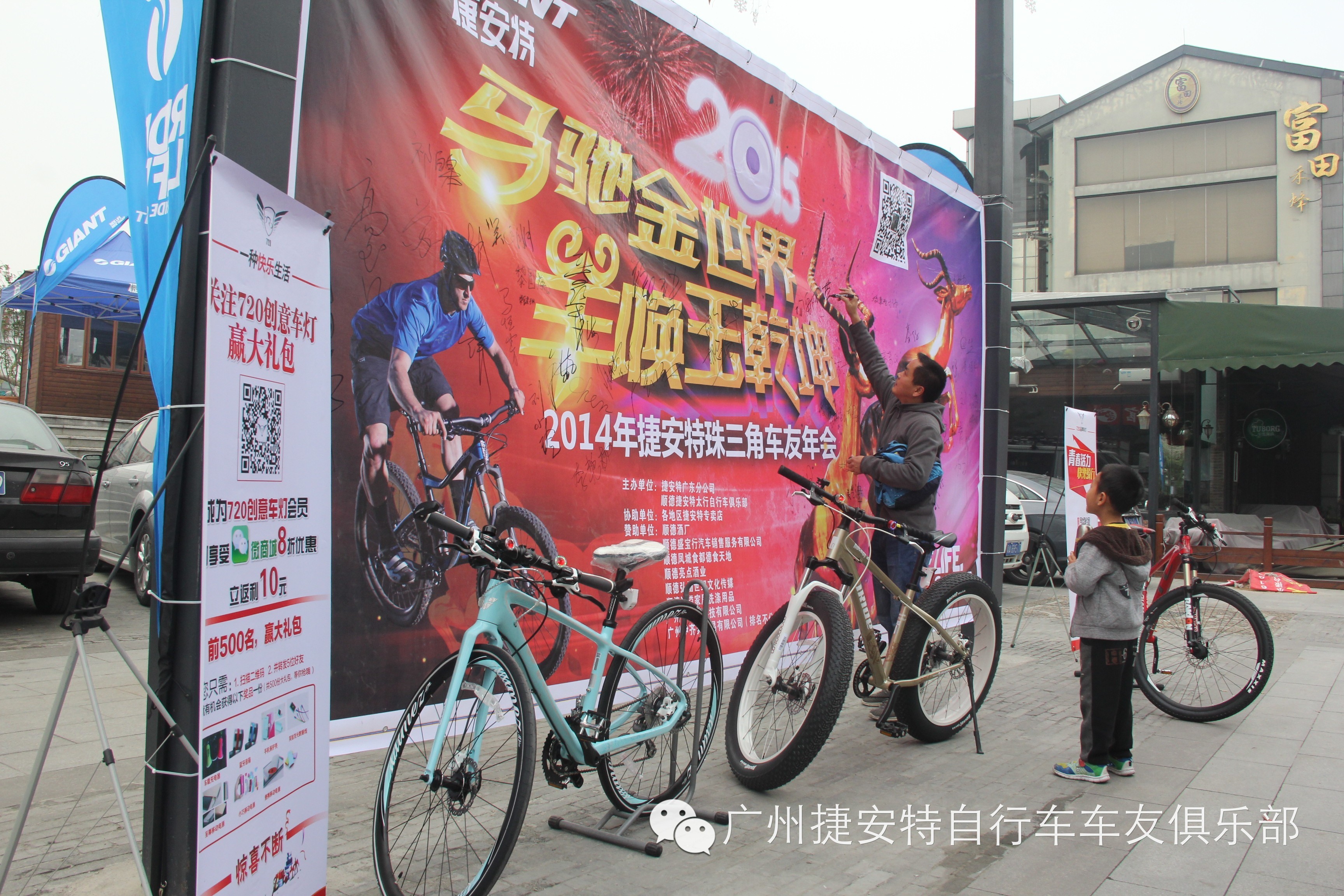 签到墙,捷安特胖胖车、Liv女生单车,还有XTC SLR格外醒目。捷安特——世界好车!伴你快乐向前行。