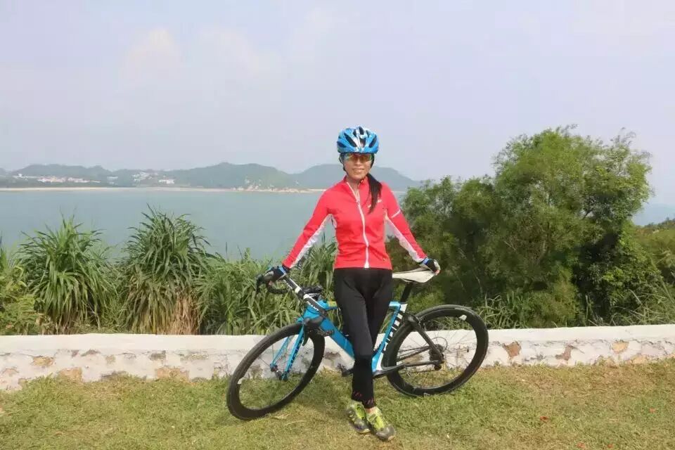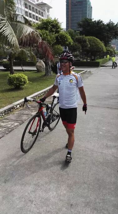 江门市区、新会捷安特掌门人龙珠参加公路组比赛,赛前信心满满。