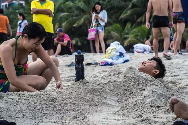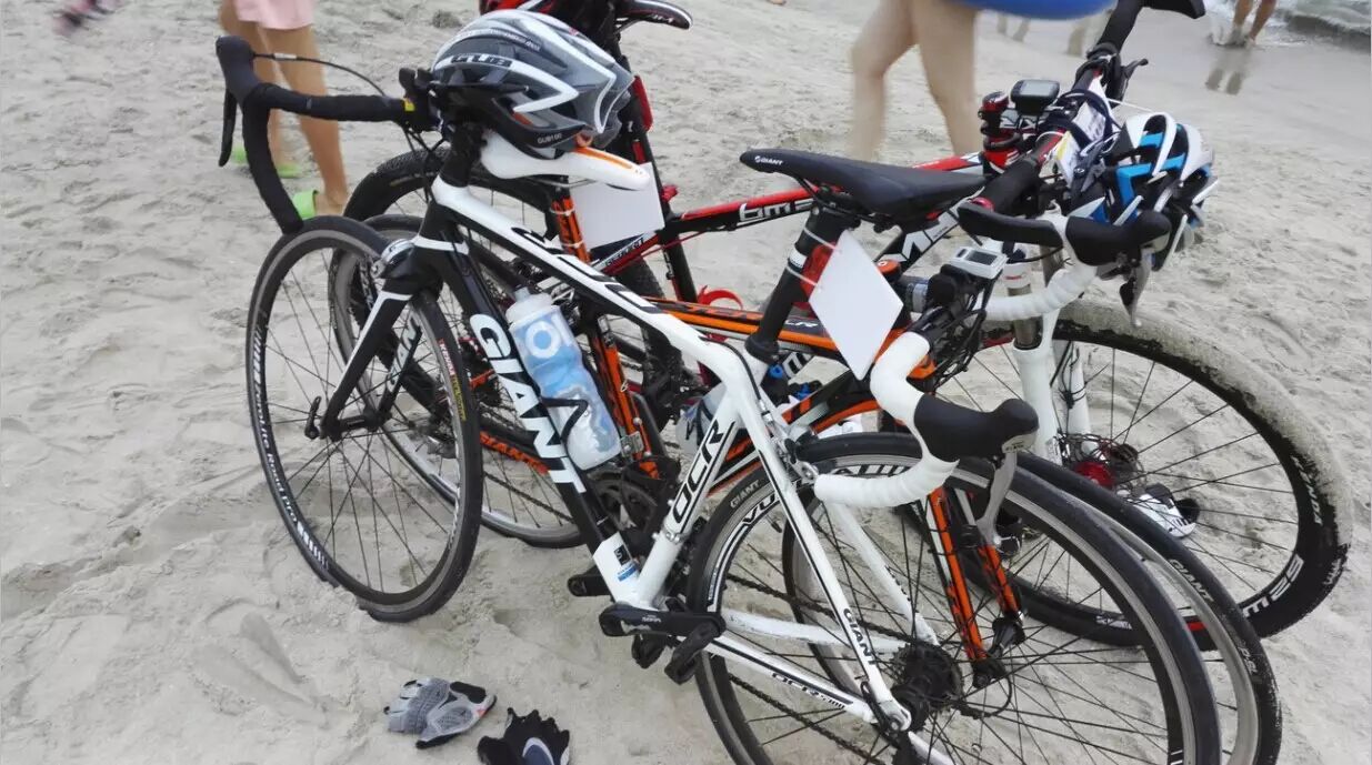 睡在沙子里,真是享受。捷安特水壶亮了。