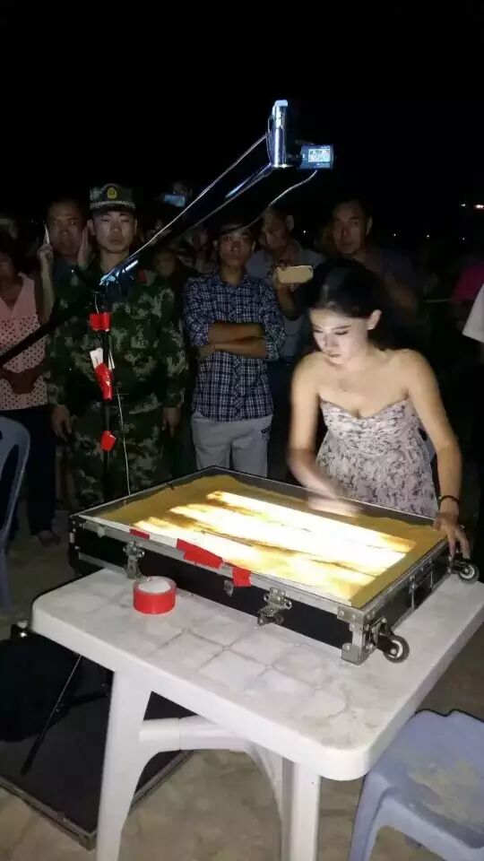 美女的沙画表演,惊艳与艺术并存。