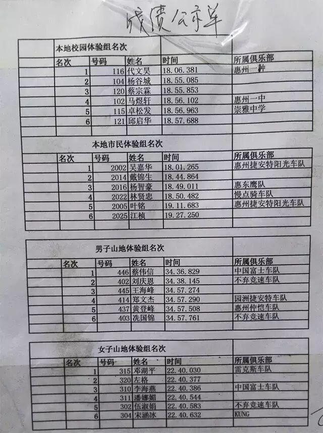 最后让我们看一下选手们的成绩吧,真的是箭一样的快,让我们为选手们鼓掌!