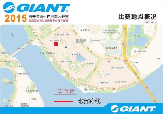 巩固卫生城市成果,践行绿色环保公约暨2015年“捷安特”惠州自行车公开赛于11月14日上午8时在惠州市东江公园举行。